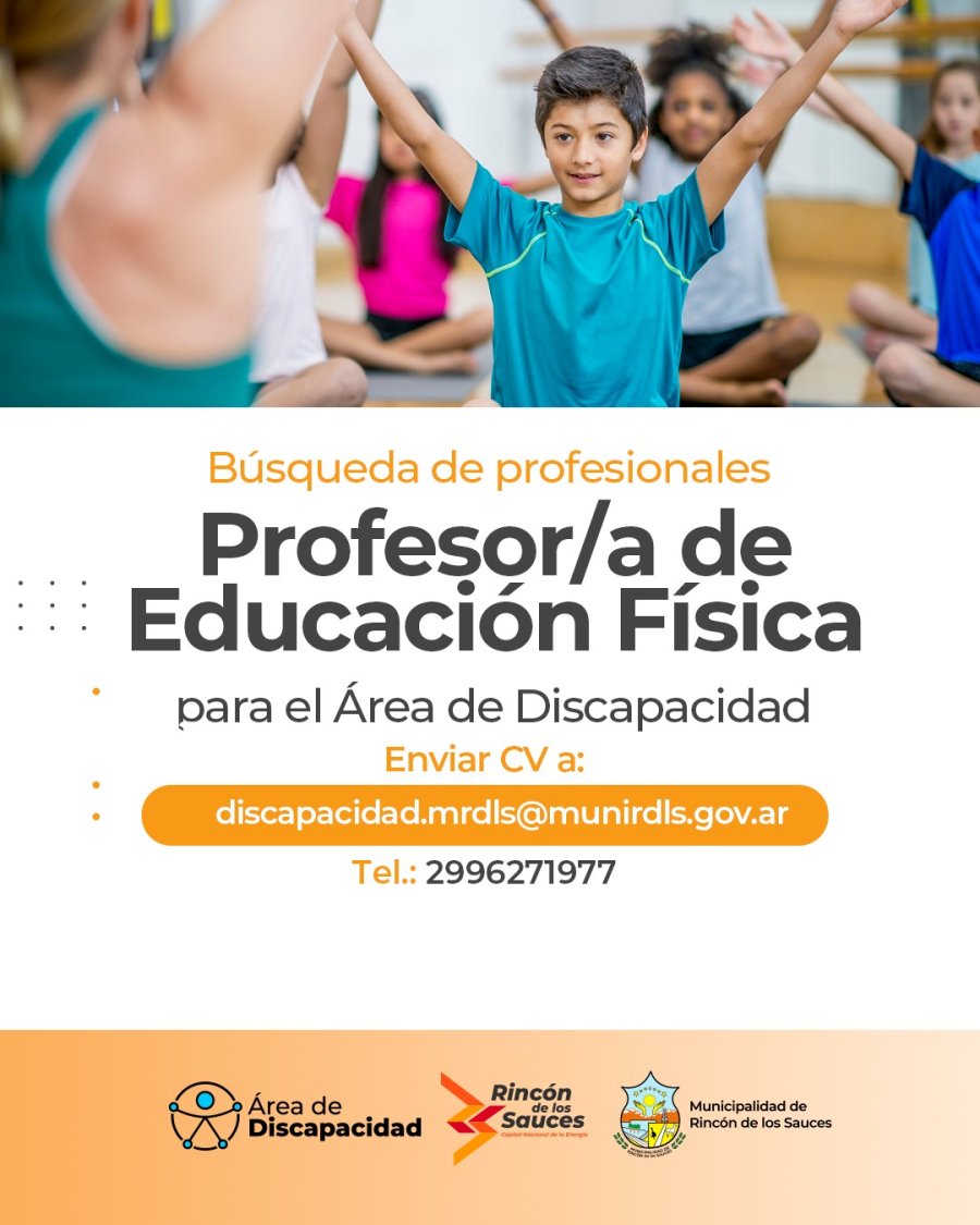 La Municipalidad de Rincón de los Sauces informó la apertura de una búsqueda de profesionales para cubrir el cargo de profesor o profesora de Educación Física, destinado al Área de Discapacidad.